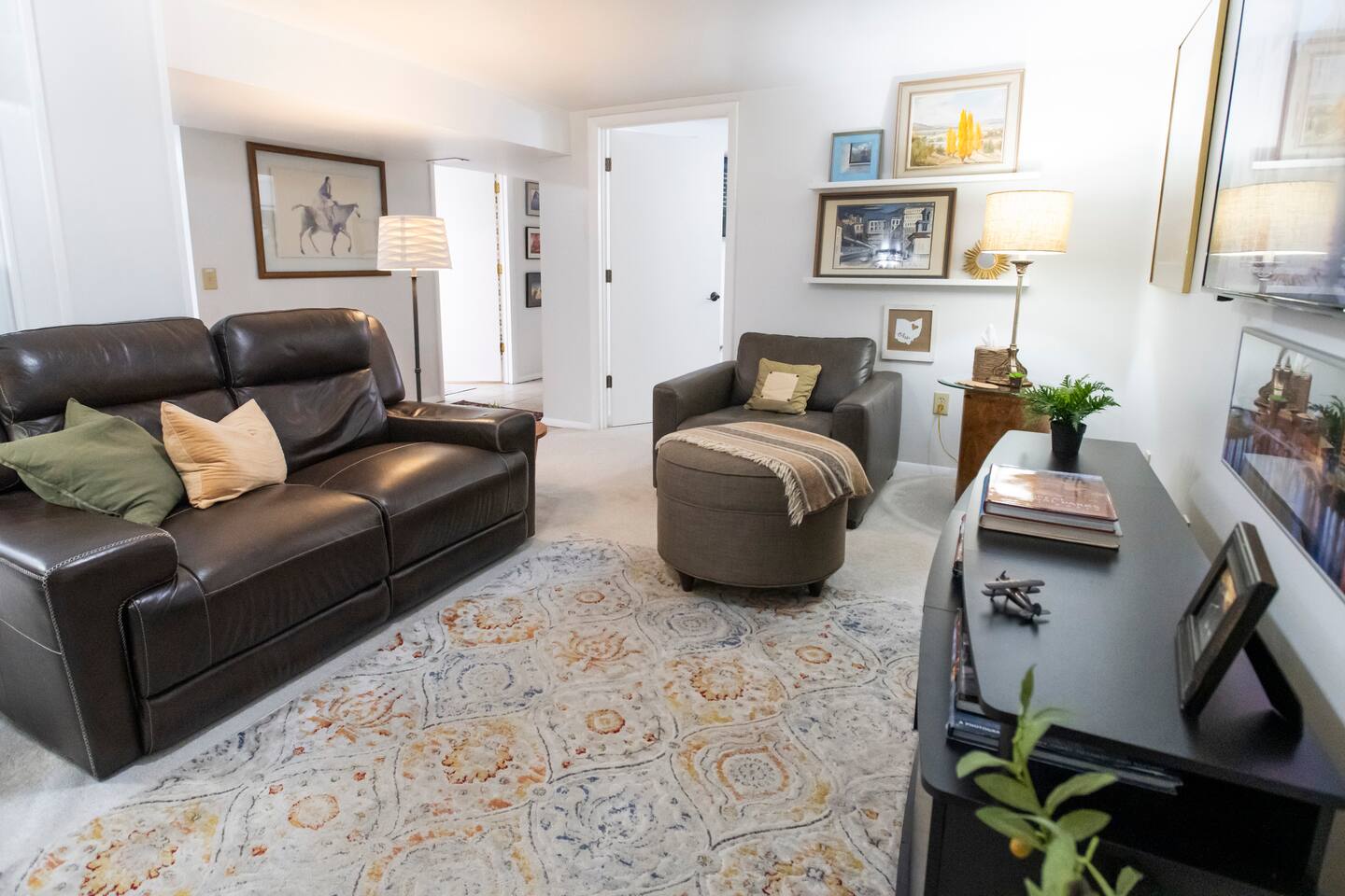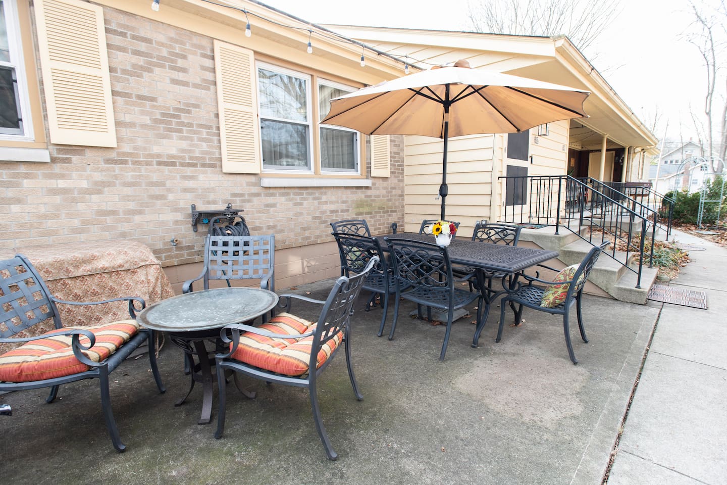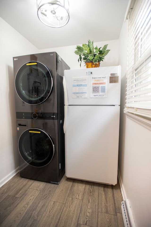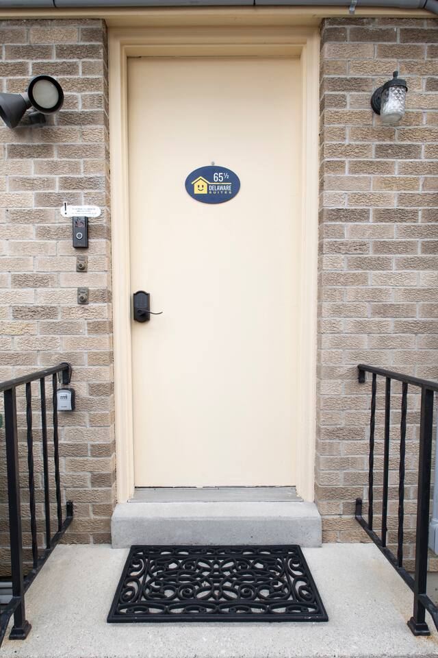 This combined listing includes BOTH suites that you know and love at The Delaware Suites in the coveted and historic Northwest Neighborhood! Each suite has its own private, exterior entrance, kitchen, living area, bedroom(s), and bathroom. A private interior hallway connects the two, so you can move easily between spaces while still enjoying separate, secure Smart Lock entrances. Your stay includes two fully private suites under one roof: • A first-floor, main-level two-bedroom suite • A lower-level one-bedroom suite We have worked hard to create a bright, clean and welcoming homebase for you to enjoy all of what Delaware and the surrounding area has to offer! Enjoy easy street parking on a quiet one-way street, cook in the fully the stocked kitchens, and/or relax by the electric fireplaces while you watch movies on your 55” smart TV after a long day of exploring or visiting family and friends. We would love to be your hosts! 🔷Key Features🔷 ☀ Main-level 2-bedroom suite+ lower-level 1-bedroom suite both with full amenities ☀ Two private entrances w/smart lock doors + interior hallway connection ☀Free street parking in front of the home on a quiet one-way street ☀Courtyard patio with outdoor dining and BBQ grill ☀Owned and managed by a local family with 25+ years of residency ☀Dog-friendly — bring your furry friends; they like vacations too! ☀0.2mi to historic Downtown Delaware ☀0.4mi to Ohio Wesleyan University ☀Total Bedrooms: 3 ☀ Accommodates up to 2 additional guests with two provided twin air mattresses ☀Total Bathrooms: 2 ☀Two Fully equipped kitchens ☀Two living rooms w/two electric fireplaces ☀Two Full-sized washers and dryers ☀ Extra space and privacy all under one convenient roof ========================================= Main-Level Suite Amenities (2 Bedroom / 1 Bath) ========================================= 🔷Kitchen 1🔷 ☀Fully equipped kitchen with pots/pans, baking dishes, glasses, serving trays, mixing bowls, etc. ☀Complimentary basket of snacks ☀Eat-in kitchen table seats 4, or 6 with stools added to the ends ☀Olive oil spray, salt/pepper, creamer, sugar, and sugar alternatives provided ☀Cuisinart single-serve coffee maker (like Keurig) with coffee, tea, and hot chocolate pods; refillable pod for your own coffee ☀French Press (BYO coffee) ☀Microwave, dishwasher, toaster oven, rice cooker, NutriBullet blender, tea kettle, family-sized electric pancake griddle, air fryer, sandwich maker, waffle maker, and more ☀Hand soap, dish soap, dishwasher liquid, and cleaning supplies provided ☀Ice cold mugs ready in the freezer 🔷Bedroom 1 and Bedroom 2🔷 ☀Queen beds with super-comfy memory foam mattresses ☀55” wall-mounted smart TV in each bedroom ☀Cozy seating (one bedroom with a couch, the other with reading chair & ottoman) ☀Extra blankets, pillows, and sheets ☀Portable fans ☀Dressers and luggage racks ☀Noise machine and earplugs (because we prioritize your best night’s sleep!) ☀ Children’s nightlight/sound machine ☀Iron/ironing board ☀ Pack-n-play with built-in changing table ☀ Tall twin air mattress with bedding 🔷 Living Room 1🔷 ☀55” Smart TV with streaming apps (remember to bring your account log in info) ☀Electric fireplace with heat or no heat option ☀Variety of board games and books ☀Comfy leather couch and two cozy wingback chairs 🔷Bathroom 1🔷 ☀Tub/shower combo ☀Plenty of shampoo, conditioner, and body wash ☀Extra towels/washcloths/hand towels (hallway closet filled with extras!) ☀Hair dryer ☀Just in case disposable toothbrush and toothpaste ☀First aid kit 🔷Workspace 1🔷 ☀Dedicated workspace area in living room with extra chairs and desk-level outlet strips ☀Bright workspace lighting ☀High speed WIFI/internet 🔷Laundry 1🔷 ☀Full-sized LG washer and dryer ☀Laundry soap, stain remover, and dryer sheets are provided 🔷Courtyard Patio and Exterior🔷 ☀Lovely courtyard patio with a dining table (seats 6) and a smaller table for informal seating (seats 2) ☀BBQ grill (BYO charcoal); grilling utensils, matches, and lighter fluid provided ☀String lights accent the patio and a table umbrella provides shade ☀Single level, ranch style home (4 steps with a railing to entry door) 🔷Important to Note for the 2 Bedroom Suite🔷 ☀The entrance to your private 2 bedroom suite will require going up 4 steps (with handrail) to reach the front entrance. The rest of the suite is all on one level. Please see additional details in our photos. ☀Your stay in the 2 bedroom suite is in one side of a duplex with a quiet, full-time neighbor next door. You will share one insulated wall and have your own private entrance, offering complete privacy throughout your stay. ========================================= Lower-level Suite Amenities (1 Bedroom / 1 Bath) ========================================= 🔷Kitchen 2🔷 ☀Fully equipped kitchen with pots/pans, baking dishes, glasses, serving trays, mixing bowls, etc. ☀Complimentary basket of snacks ☀Eat-in kitchen with counter seats 4 ☀Olive oil spray, salt/pepper, creamer, sugar, and sugar alternatives provided ☀ Cuisinart single-serve coffee maker (like Keurig) with coffee, tea, and hot chocolate pods; refillable pod for your own coffee ☀French Press (BYO coffee) ☀Microwave, dishwasher, toaster oven, crockpot, NutriBullet blender, tea kettle, waffle maker, and more ☀Hand soap, dish soap, dishwasher liquid, and cleaning supplies provided ☀Ice cold mugs ready in the freezer 🔷Bedroom 3🔷 ☀Queen bed with super-comfy memory foam mattress ☀55” wall-mounted smart TV ☀Extra blankets, pillows, and sheets ☀Tower fan and space heater ☀Dresser and luggage rack ☀Noise machine and earplugs (because we prioritize your best night’s sleep!) ☀Private bedroom with its own door (not a studio apartment) ☀Iron/ironing board, extra blankets, pack-n-play, and tall twin air matt
