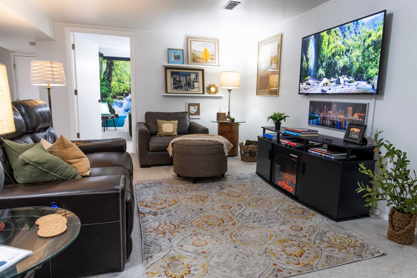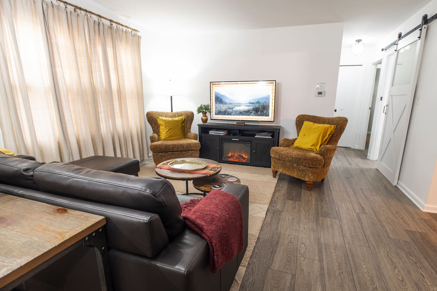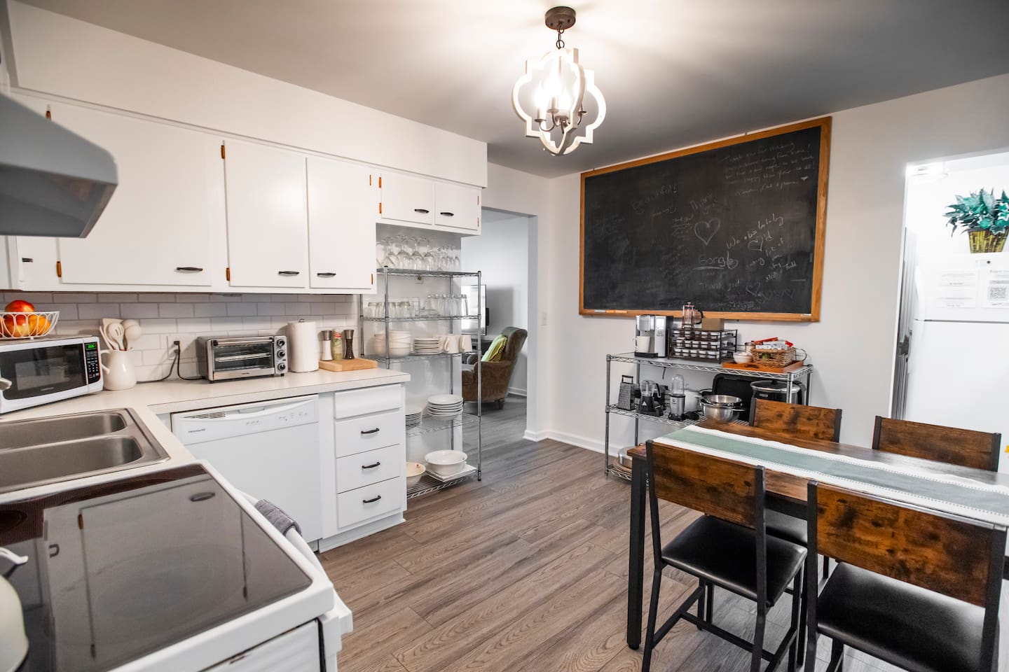 This combined listing includes BOTH suites that you know and love at The Delaware Suites in the coveted and historic Northwest Neighborhood! Each suite has its own private, exterior entrance, kitchen, living area, bedroom(s), and bathroom. A private interior hallway connects the two, so you can move easily between spaces while still enjoying separate, secure Smart Lock entrances. Your stay includes two fully private suites under one roof: • A first-floor, main-level two-bedroom suite • A lower-level one-bedroom suite We have worked hard to create a bright, clean and welcoming homebase for you to enjoy all of what Delaware and the surrounding area has to offer! Enjoy easy street parking on a quiet one-way street, cook in the fully the stocked kitchens, and/or relax by the electric fireplaces while you watch movies on your 55” smart TV after a long day of exploring or visiting family and friends. We would love to be your hosts! 🔷Key Features🔷 ☀ Main-level 2-bedroom suite+ lower-level 1-bedroom suite both with full amenities ☀ Two private entrances w/smart lock doors + interior hallway connection ☀Free street parking in front of the home on a quiet one-way street ☀Courtyard patio with outdoor dining and BBQ grill ☀Owned and managed by a local family with 25+ years of residency ☀Dog-friendly — bring your furry friends; they like vacations too! ☀0.2mi to historic Downtown Delaware ☀0.4mi to Ohio Wesleyan University ☀Total Bedrooms: 3 ☀ Accommodates up to 2 additional guests with two provided twin air mattresses ☀Total Bathrooms: 2 ☀Two Fully equipped kitchens ☀Two living rooms w/two electric fireplaces ☀Two Full-sized washers and dryers ☀ Extra space and privacy all under one convenient roof ========================================= Main-Level Suite Amenities (2 Bedroom / 1 Bath) ========================================= 🔷Kitchen 1🔷 ☀Fully equipped kitchen with pots/pans, baking dishes, glasses, serving trays, mixing bowls, etc. ☀Complimentary basket of snacks ☀Eat-in kitchen table seats 4, or 6 with stools added to the ends ☀Olive oil spray, salt/pepper, creamer, sugar, and sugar alternatives provided ☀Cuisinart single-serve coffee maker (like Keurig) with coffee, tea, and hot chocolate pods; refillable pod for your own coffee ☀French Press (BYO coffee) ☀Microwave, dishwasher, toaster oven, rice cooker, NutriBullet blender, tea kettle, family-sized electric pancake griddle, air fryer, sandwich maker, waffle maker, and more ☀Hand soap, dish soap, dishwasher liquid, and cleaning supplies provided ☀Ice cold mugs ready in the freezer 🔷Bedroom 1 and Bedroom 2🔷 ☀Queen beds with super-comfy memory foam mattresses ☀55” wall-mounted smart TV in each bedroom ☀Cozy seating (one bedroom with a couch, the other with reading chair & ottoman) ☀Extra blankets, pillows, and sheets ☀Portable fans ☀Dressers and luggage racks ☀Noise machine and earplugs (because we prioritize your best night’s sleep!) ☀ Children’s nightlight/sound machine ☀Iron/ironing board ☀ Pack-n-play with built-in changing table ☀ Tall twin air mattress with bedding 🔷 Living Room 1🔷 ☀55” Smart TV with streaming apps (remember to bring your account log in info) ☀Electric fireplace with heat or no heat option ☀Variety of board games and books ☀Comfy leather couch and two cozy wingback chairs 🔷Bathroom 1🔷 ☀Tub/shower combo ☀Plenty of shampoo, conditioner, and body wash ☀Extra towels/washcloths/hand towels (hallway closet filled with extras!) ☀Hair dryer ☀Just in case disposable toothbrush and toothpaste ☀First aid kit 🔷Workspace 1🔷 ☀Dedicated workspace area in living room with extra chairs and desk-level outlet strips ☀Bright workspace lighting ☀High speed WIFI/internet 🔷Laundry 1🔷 ☀Full-sized LG washer and dryer ☀Laundry soap, stain remover, and dryer sheets are provided 🔷Courtyard Patio and Exterior🔷 ☀Lovely courtyard patio with a dining table (seats 6) and a smaller table for informal seating (seats 2) ☀BBQ grill (BYO charcoal); grilling utensils, matches, and lighter fluid provided ☀String lights accent the patio and a table umbrella provides shade ☀Single level, ranch style home (4 steps with a railing to entry door) 🔷Important to Note for the 2 Bedroom Suite🔷 ☀The entrance to your private 2 bedroom suite will require going up 4 steps (with handrail) to reach the front entrance. The rest of the suite is all on one level. Please see additional details in our photos. ☀Your stay in the 2 bedroom suite is in one side of a duplex with a quiet, full-time neighbor next door. You will share one insulated wall and have your own private entrance, offering complete privacy throughout your stay. ========================================= Lower-level Suite Amenities (1 Bedroom / 1 Bath) ========================================= 🔷Kitchen 2🔷 ☀Fully equipped kitchen with pots/pans, baking dishes, glasses, serving trays, mixing bowls, etc. ☀Complimentary basket of snacks ☀Eat-in kitchen with counter seats 4 ☀Olive oil spray, salt/pepper, creamer, sugar, and sugar alternatives provided ☀ Cuisinart single-serve coffee maker (like Keurig) with coffee, tea, and hot chocolate pods; refillable pod for your own coffee ☀French Press (BYO coffee) ☀Microwave, dishwasher, toaster oven, crockpot, NutriBullet blender, tea kettle, waffle maker, and more ☀Hand soap, dish soap, dishwasher liquid, and cleaning supplies provided ☀Ice cold mugs ready in the freezer 🔷Bedroom 3🔷 ☀Queen bed with super-comfy memory foam mattress ☀55” wall-mounted smart TV ☀Extra blankets, pillows, and sheets ☀Tower fan and space heater ☀Dresser and luggage rack ☀Noise machine and earplugs (because we prioritize your best night’s sleep!) ☀Private bedroom with its own door (not a studio apartment) ☀Iron/ironing board, extra blankets, pack-n-play, and tall twin air matt