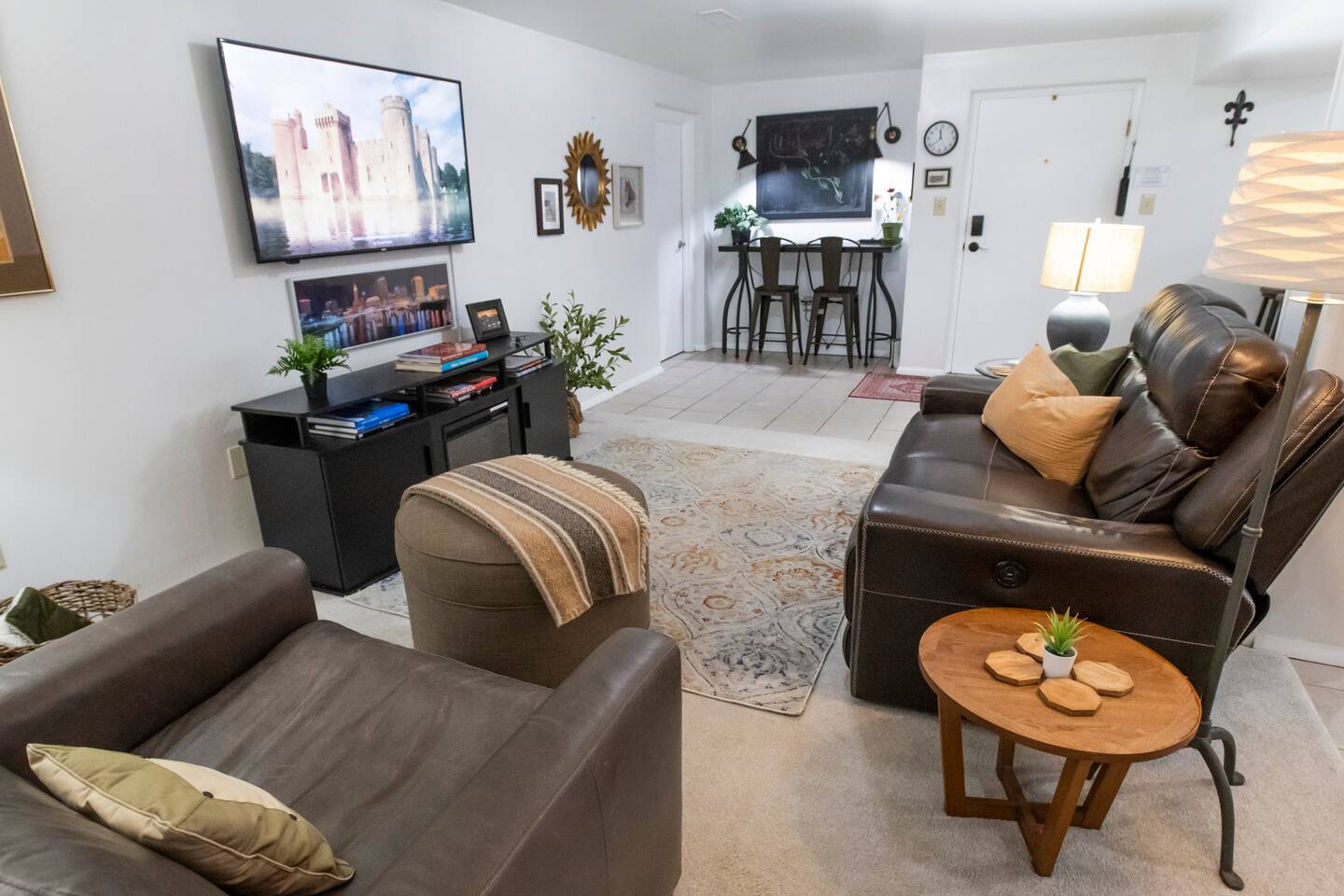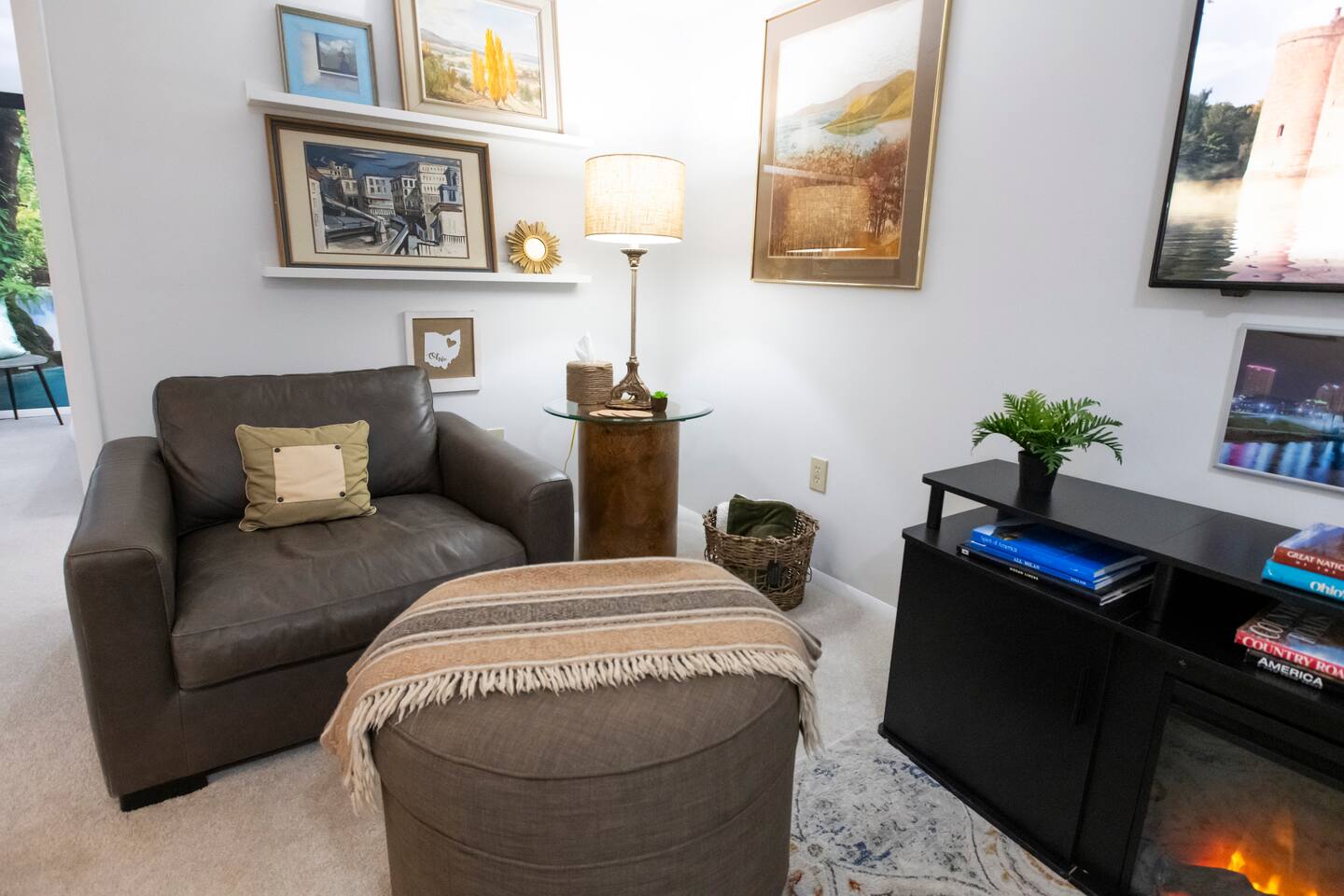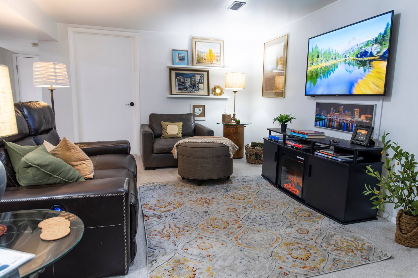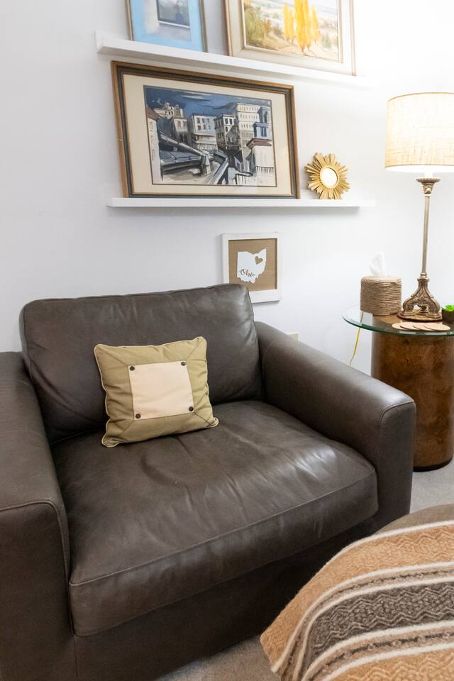 🔷Key Features🔷 ☀Free street parking in front of the home on a quiet one-way street ☀Dog-friendly — bring your furry friends; they like vacations too! ☀Electric fireplace ☀0.2mi to historic downtown Delaware ☀0.4mi to OWU ☀Full-sized washer and dryer ☀Fully equipped kitchen ☀Motorized reclining couch ☀Central heating and cooling (no window AC units!) ☀Note: This is a lower-level suite with a flight of stairs (with handrail) ☀Owned and managed by a local family with 25+ years of residency 🔷Book today & stay in historic Delaware, Ohio!🔷 🔷Important to Note🔷 ☀ Your stay is in the lower level of a well-insulated duplex, with a quiet, full-time resident living above ☀ As this apartment is in the basement, there may occasionally be some noise from the unit above. We have provided a sound machine and ear plugs for use during stay to help with any potential noises ☀String lights along the fence light the walkway to your private entrance ☀Guests are welcome to enjoy the front yard during their stay. We just ask that you please avoid the sidewalks leading to the back part of the yard or house, as that area is part of a private residence. ☀Smoking is allowed outdoors only, and guests are asked to use the provided smokers waste receptacle. A $300 fee will be assessed if smoking occurs indoors. 🔷Kitchen🔷 ☀Fully equipped kitchen with pots/pans, baking dishes, glasses, serving trays, mixing bowls, etc. ☀Complimentary basket of snacks ☀Eat-in kitchen with counter seats 4 ☀Olive oil spray, salt/pepper, creamer, sugar, and sugar alternatives provided ☀ Cuisinart single-serve coffee maker (like Keurig) with coffee, tea, and hot chocolate pods; refillable pod for your own coffee ☀French Press (BYO coffee) ☀Microwave, dishwasher, toaster oven, air fryer, crockpot, NutriBullet blender, tea kettle, waffle maker, and more ☀Hand soap, dish soap, dishwasher liquid, and cleaning supplies provided ☀Ice cold mugs ready in the freezer 🔷Bedroom🔷 ☀Queen bed with super-comfy memory foam mattress ☀55” wall-mounted smart TV ☀Extra blankets, pillows, and sheets ☀Tower fan and space heater ☀Dresser and luggage rack ☀Noise machine and earplugs (because we prioritize your best night’s sleep!) ☀Private bedroom with its own door (not a studio apartment) ☀Iron/ironing board, extra blankets, pack-n-play, and tall twin air mattress with bedding in the living room closet 🔷Living Room🔷 ☀55” Smart TV with streaming apps (remember to bring your account log in info) ☀Electric fireplace with heat or no heat option ☀Variety of board games and books ☀Comfy leather couch with motorized reclining and a cozy reading chair ☀Extra large walk-in closet 🔷Bathroom🔷 ☀Tub/shower combo ☀Plenty of shampoo, conditioner, and body wash ☀Extra towels/washcloths/hand towels ☀Hair dryer ☀Just in case disposable toothbrush and toothpaste ☀First aid kit ☀Full-size egress window 🔷Workspace🔷 Dedicated workspace area in living room with extra chairs and desk-level outlet strips ☀Bright workspace lighting ☀High speed WIFI/internet 🔷Laundry🔷 ☀Full-sized washer and dryer ☀Laundry soap, stain remover, and dryer sheets are provided 🔷Additional Information🔷 ☀ Need more space? We also offer a 2-bedroom suite on the 1st level of the opposite side of the building. If our 1-bedroom is booked, check availability for the 2-bedroom and enjoy similar perks but in a 2-bedroom version! ☀ Looking for 3 bedrooms? Both our one-bedroom and two-bedroom suites can be rented together in our combined listing—perfect for groups who want extra space while keeping privacy. Be sure to check out that listing for all of the details to see if this is a better option for you! ☀ We follow Airbnb’s five-step enhanced cleaning process, which is based on Airbnb’s cleaning handbook that was developed in partnership with experts. 🔷Extra Guests🔷 ☀Sleeps up to 3 guests with available twin air mattress ☀No extra charge for a 3rd guest — just be sure to update your reservation to reflect the total number staying ☀If any guests will come and go without you, please share their names and phone numbers for emergency contact purposes 🔷Why Guests Love the Neighborhood!🔷 ☀Located in the charming and historic Northwest neighborhood, known for its tree-lined streets and beautiful architecture. ☀Delaware is proud to be named one of Ohio Magazine’s Best Hometowns, a Money Magazine Top 50 Best Place to Live in America, and home to an award-winning downtown. ☀Your stay is only 2 blocks away from a vintage record store, breweries, ice cream shops, seasonal farmers markets, coffee shops, boutiques, bakeries, antique shops and more! 🔷Distances to Key Locations🔷 ☀Downtown Delaware 0.2 miles (2 blocks) ☀Ohio Wesleyan University 0.4 miles ☀Ohio Wesleyan Stadium 0.6 miles ☀Historic Strand Theatre 0.3 miles ☀Delaware County Fair Grounds 1.2 miles ☀Columbus Zoo/Zoombezi Bay 13.2 miles ☀John Glenn Columbus International Airport 31.4 miles ☀Rickenbacker International Airport 40.7 miles ☀Pat’s Endangered Species vintage record store 0.2 miles ☀Boardman Arts Park 0.3 miles ☀Delaware Lake and State Park 6.9 miles ☀Alum Creek State Park Beach and Marina 11.6 miles ☀Ikea 14.5 miles ☀Polaris Fashion Place Mall 13.5 miles ☀Grady Memorial Hospital 1.1 miles ☀Dublin Methodist Hospital 17.7 miles ☀Mount Carmel St Ann's Hospital 18.4 miles